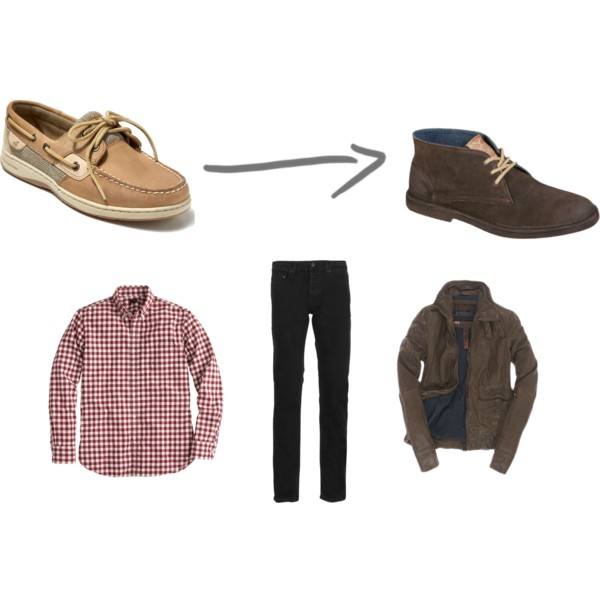 Finally, here’s a look for the guys. Instead of Sperry’s, choose a desert boot, and pair it with your favorite jeans, a checkered button down and a cargo jacket. Why shouldn’t guys have a fashionable fall, too?